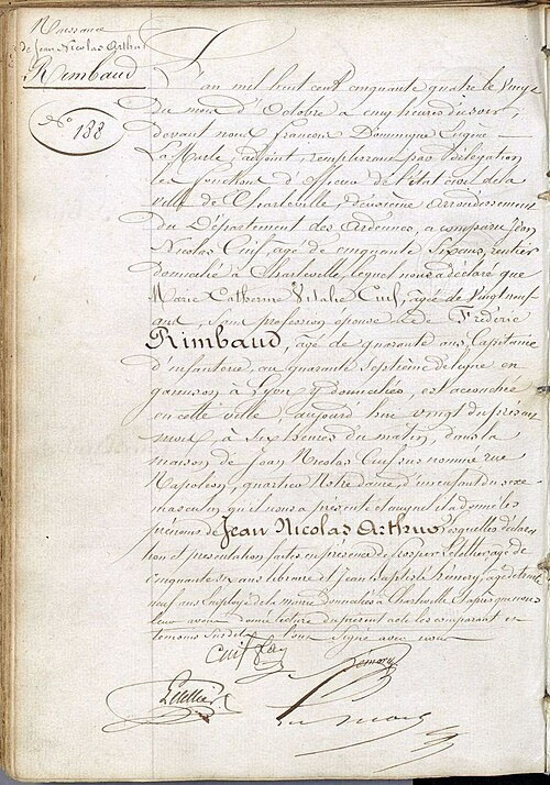 Acte de naissance d'Arthur Rimbaud >